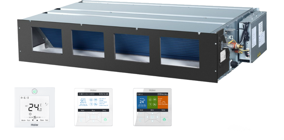Compact in height, durable internal blocks to create pressure up to 200 Pa. Hidden installation in the system of suspended ceilings. A wide range of models for various areas. During the work differ in the low noise level. Convenient control with a choice of wired remote control or IR remote control (optional). Convenient installation and ease of maintenance blocks. The standard kit has a filter.