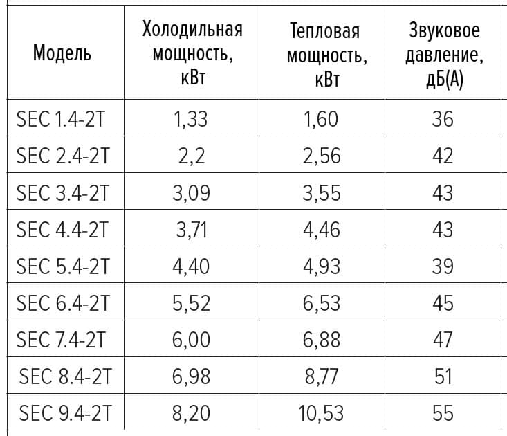 ХОЛОДИЛЬНАЯ МОЩНОСТЬ: 0.73 - 8.20 кВт