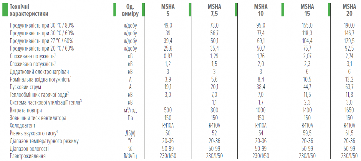 В серию включены 5 основных моделей с диапазоном производительности влагоудаления от 50 до 190 л/сут.