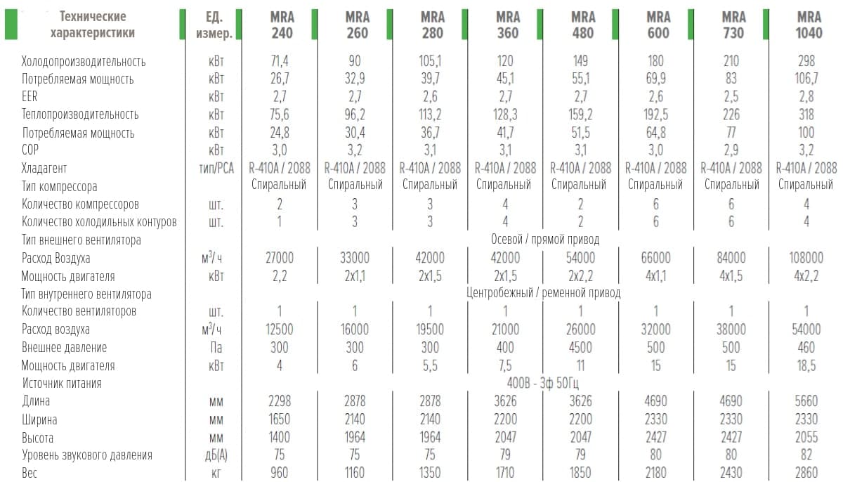 ХОЛОДИЛЬНАЯ МОЩНОСТЬ: 9.9 - 298 кВт