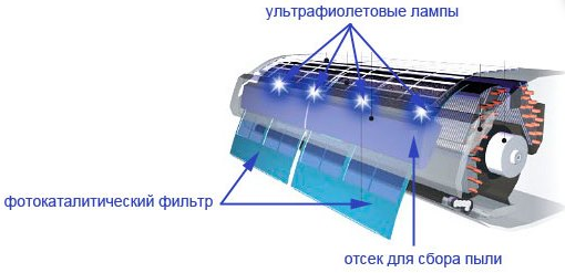 - многоступенчатая очистка воздуха, включая фотокаталитический фильтр