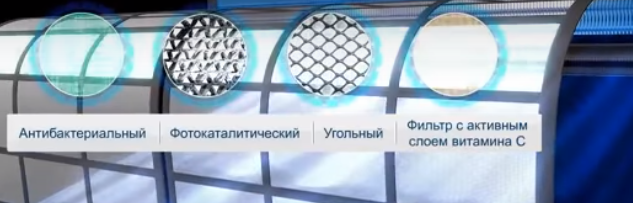 антибактериальный, фотокаталитический, угольный и с витамином С.