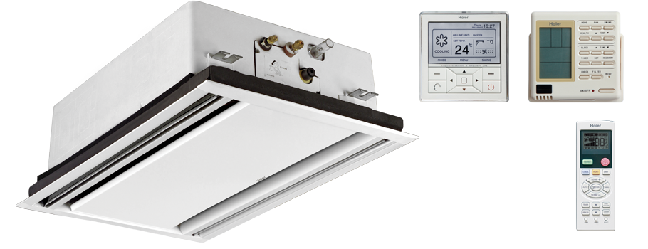 AB-MBERA type internal cassette units are functional and compact. Cooling or heating of rooms are carried out thanks to two circulating air flows. Systems are installed hidden in suspended ceilings. Economical to use. Work quietly enough. The heating-cooling functions are controlled using the remote IR remote control. Compact case design: height only 220 mm. Equipped with built-in high-pressure drainage pump.