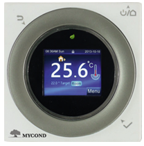 Mycond Elite is the new generation of smart thermostats by Mycond. Elite series is notable for attractive design, broad management options as well as easy set-up/adjustment. Panel is equipped with wireless control with possibility to save the settings in the Cloud, which greatly simplifies its use. The metal ring and the touch screen allow changing the settings of the control panel easily and quickly, as well as controlling the room temperature.
