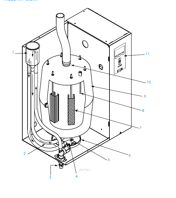 Цилиндры с электродами периодически нуждаются в чистке или замене из-за образования известковой накипи.