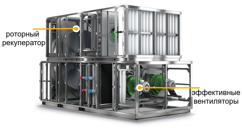 - высокий коэффициент утилизации явного и скрытого тепла;
