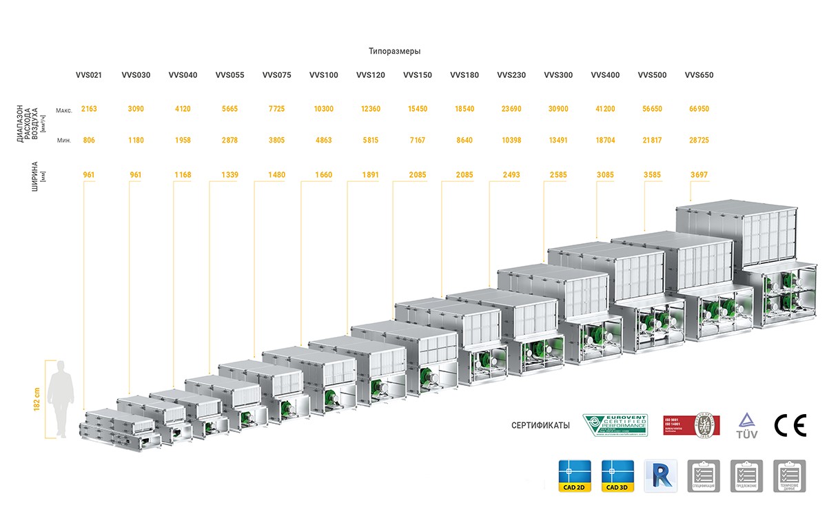 - агрегаты VENTUS VVS оптимизированы по типу рекуператоров под различные по производительности модели;