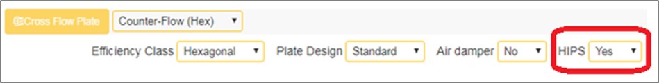 Для комплекта агрегата с исполнением теплоутилизатора из HIPS в программе CCOL4 необходимо выбрать в окошке "HIPS" - "YES" .