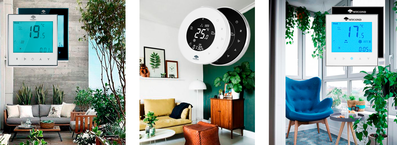 Терморегуляторы Mycond — это простое и доступное решение, чтобы целый год экономить на отоплении и кондиционировании без ущерба для собственного здоровья, комфорта или бизнеса!