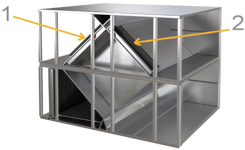 Чтобы обеспечить правильную работу теплообменника для рекуперации холода, этот теплообменник оснащается на заводе-изготовителе заслонками, закрывающими приток в теплообменнике с перекрестным потоком.
