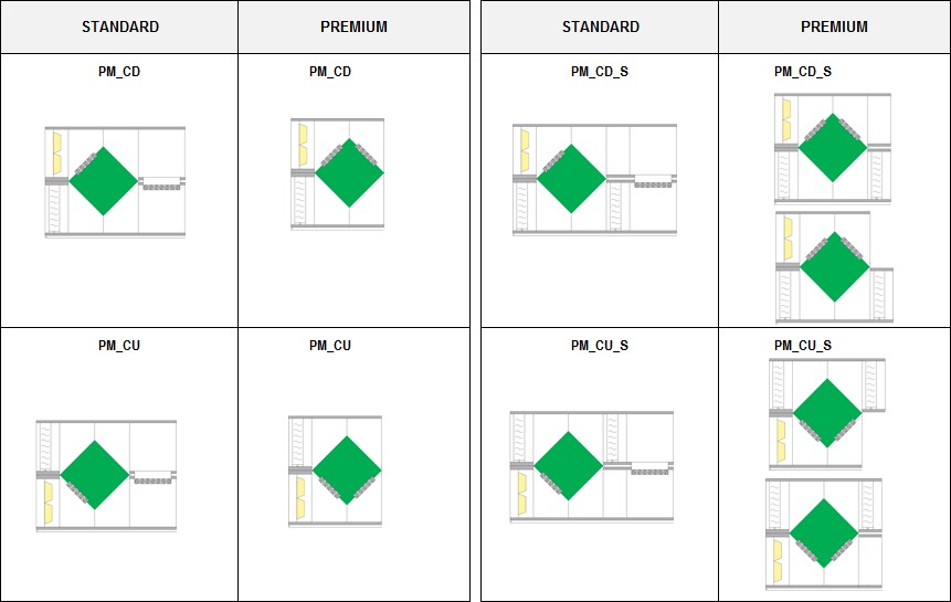 Поскольку смесительная камера перемещается в байпасное пространство, устройства с перекрестноточным рекуператором с камерой смешивания с опцией PREMIUM обычно короче, чем системы со стандартной опцией. Разница находится в пределах 366–720 мм в зависимости от модели.