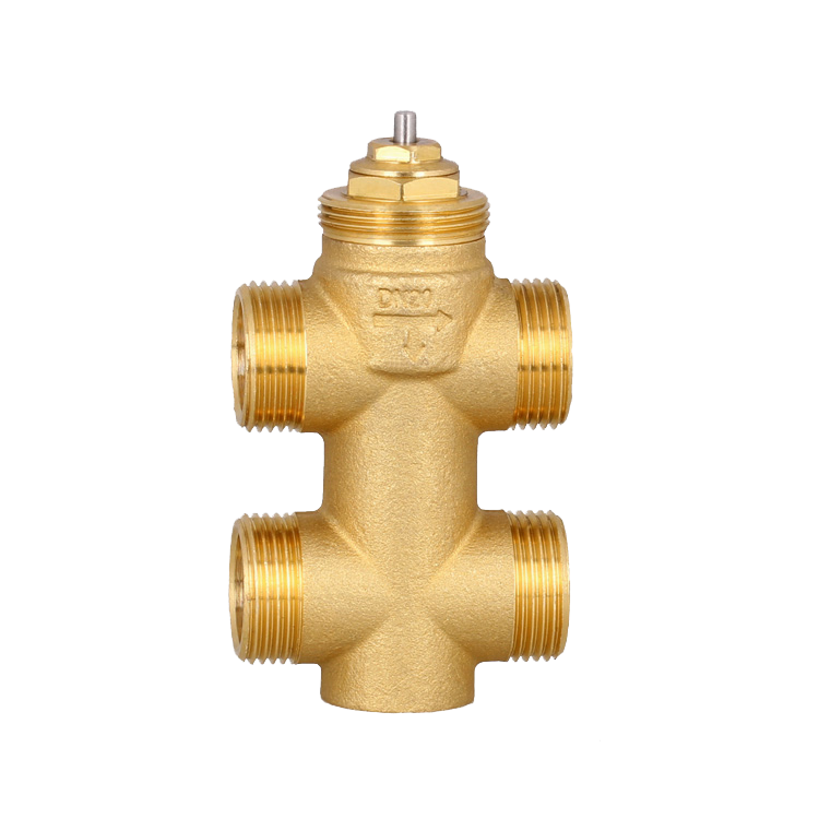 Трёхходовой клапан служит для перекрытия или распределения потоков (один вход, два выхода), или для смешивания потоков, тем самым регулируется количество холодной/горячей воды, подаваемой к фанкойлу. Запорный элемент клапана - шток, приводится в движение под действием термопривода, при этом открывает или закрывает движение потоков воды через клапан. Команда на привод передается с панели управления фанкойла или автоматикой системы кондиционирования / отопления.