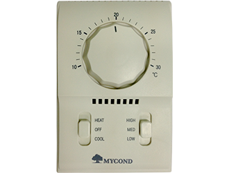 Самый простой и безотказный механический терморегулятор для системы фанкойлов. Настенный термостат для ручной настройки поворотом колеса нужной температуры воздуха. Включение или выключение отопительной системы или системы кондиционирования производится переключателем в положение HEAT или COOL.