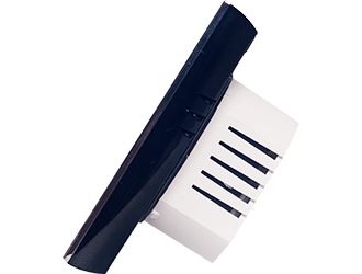 Оригинальный черный глянцевый дисплей терморегулятора, с крупными голубыми цифрами и значками индикации, станет интересным акцентом и подойдет для многих стилей современного интерьера. Крупный шрифт и понятные значки индикации отображают настраиваемые параметры: температуру воздуха, период работы и дни недели, текущее время, тип датчика и режим работы. Подсвечиваемые сенсорные кнопки внизу панели помогут комфортной работе с терморегулятором.