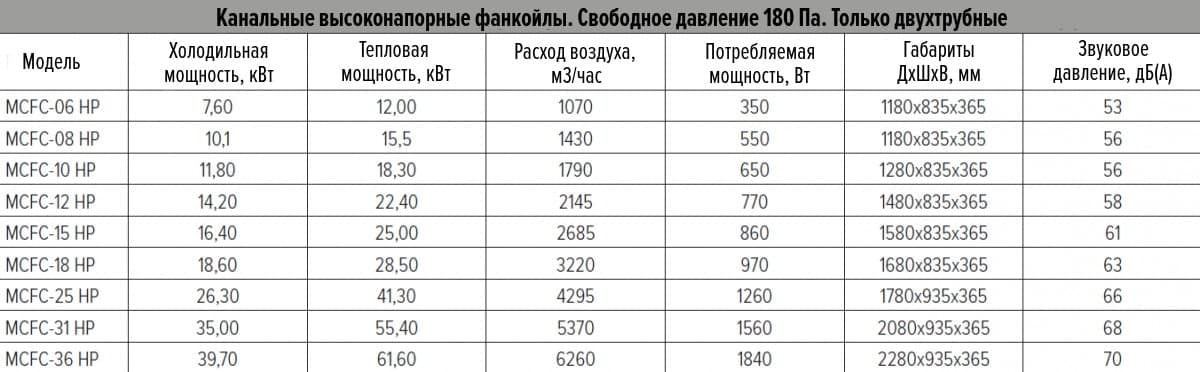 Высоконапорные фанкйлы серии MCFC-HP устанавливаются скрыто в подпотолочных конструкциях, забор воздуха осуществляется через решетку с фильтром сзади, а выпуск через переднюю решетку. Установка в систему воздуховодов, с подсоединением к системе дренажа.  Фанкойлы отличаются производительной работой и экономными энергозатратами.  Модели оснащены высококачественным теплообменником, защищенным от коррозии, и производительным вентилятором. Корпус данной серии защищен тонким звукоизолирующим покрытием для работы с низким уровнем шума. Внушительный модельный ряд позволяет выбрать агрегат под помещения любых размеров.
