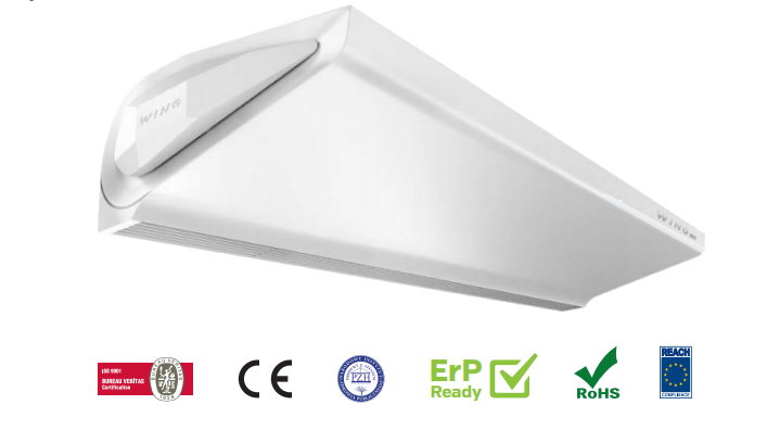 В дополнение к изысканному дизайну, в перечень преимуществ воздушной завесы WING, можно добавить конструкционное совершенство моделей серии. Усовершенствованный энергоэффективный двигатель в совокупности с конструкцией вентилятора обеспечивает снижение энергопотребления на 40%, по сравнению с завесами-аналогами.